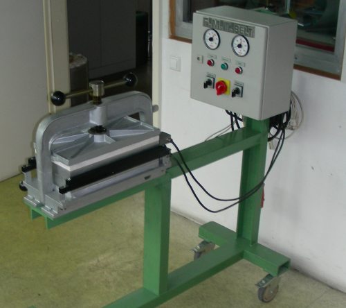 Adhesiv presses elektrically heated and thermostaticlly controllded press to provide the required pressure during the sticking process (Illustration similar to real )